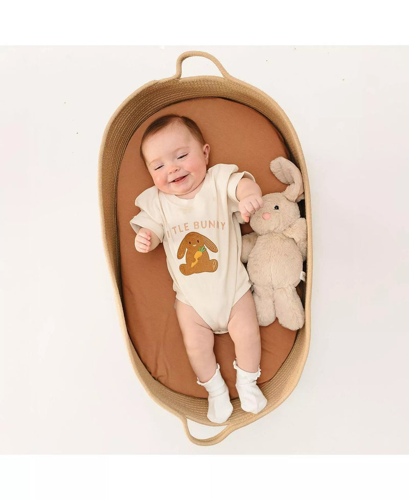 Little Bunny Patch Easter Short Sleeve Romper - Natural