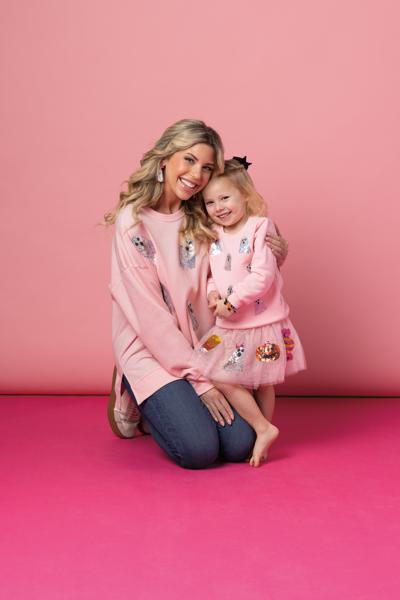 Pink Skirt w/Stars & Swirl Sequin Trim at Hem