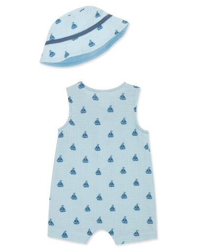 Sailboat Print Terry Polo Shirt- Sky Blue