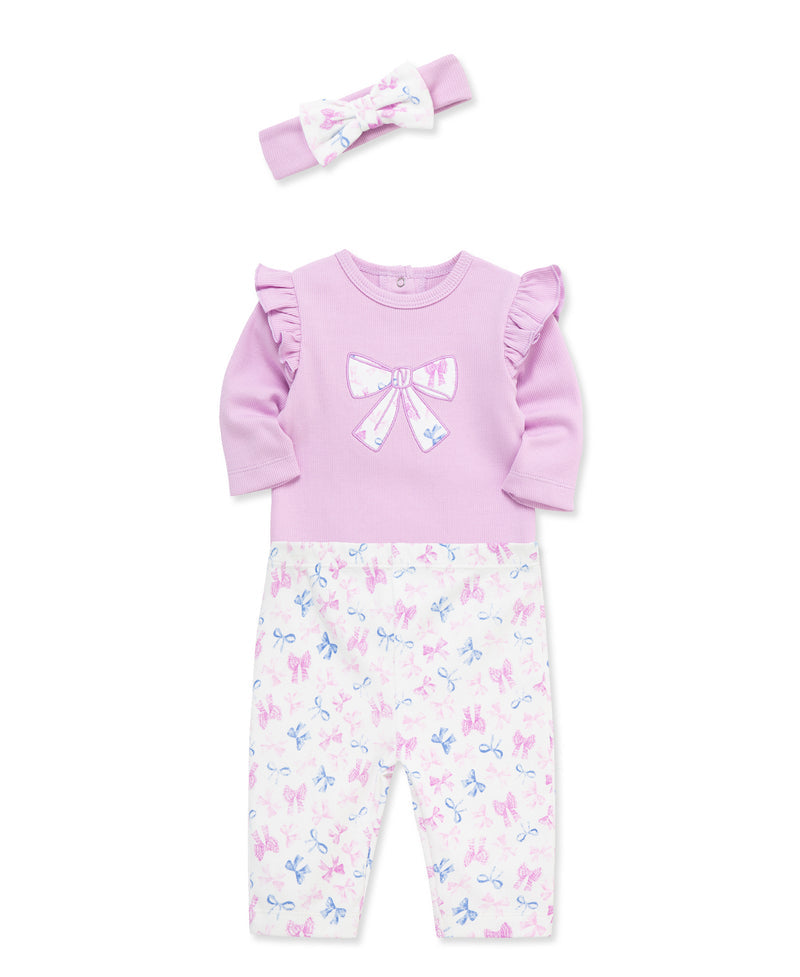 Pink Rib Ruffle Bow Baby Rib 2pc Set - Natural