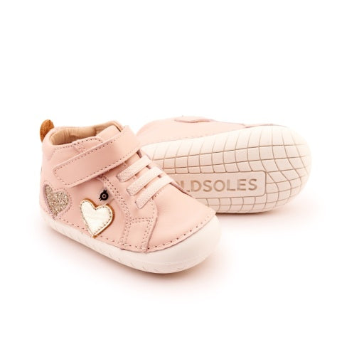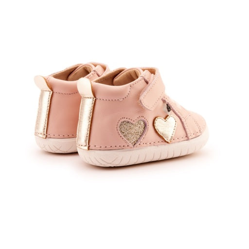 Harper Pave adds sparkle with heart cut-outs in metallics. This Pave High-top is a perfect new walker and toddler shoe, protecting little tootsies with a rubber toe bumper. Easy to fit with an adjustable velcro strap and elastic laces. When it comes to a special occasion or for everyday go to shoe, the Harper Pave ticks all boxes. Made from premium leather, breathable lining, and a non-slip rubber sole. Podiatrist approved with barefoot functionality that gives little toes room to wriggle and grow.