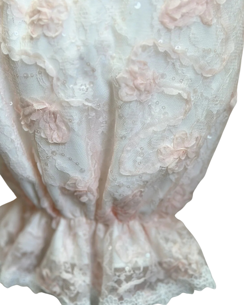 Belt L/S Pink Belt Cream Lace Sack Gown