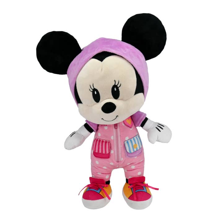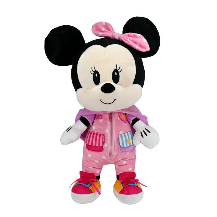 This Disney Baby Minnie Mouse Dress and Play Plush is a fun, hands-on learning toy to teach little ones how to do some of those basic functions they will need to perform during their everyday lives. Minnie Mouse is made of super soft materials, with sweet embroidered eyes, a friendly smile. She is sporting a pink, polka dot jump suit with two pockets and a colorful purple hood. This developmental plush offers 4 simple dressing functions: zipper, snap, touch and close fastener and tie. The hood is also adjustable, allowing Minnie’s iconic ears to peek through. This Minnie Mouse Learn to Dress is sure to engage with her many fun, yet educational features!