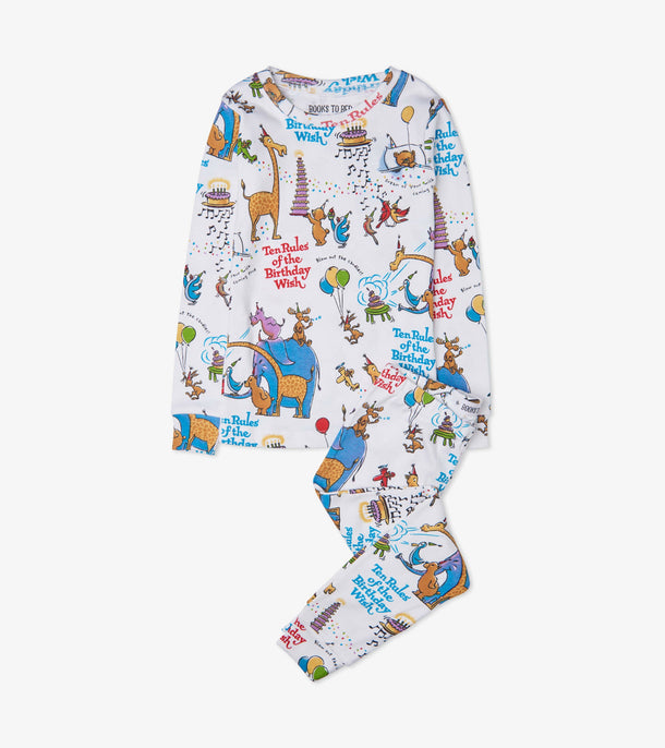 There's no better feeling than putting on a cozy pair of pajamas and snuggling up with a great book before bed. Make their nightly ritual even more memorable by bringing their favourite books to life with these adorable pajama sets! Based on the beloved children's book "Ten Rules of the Birthday Wish" your little ones will love wearing this super soft pajama that features the same things that appear in the book. We think that this extra special pajama set might just become their new favourite!