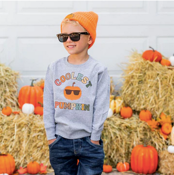 The Coolest Pumpkin long sleeve sweatshirt is the cutest sweatshirt for boys celebrating the arrival of Autumn! The super soft fabric makes it a comfortable option for Fall.