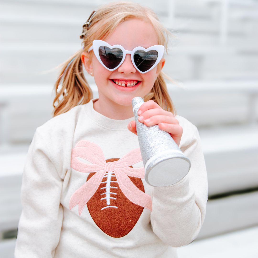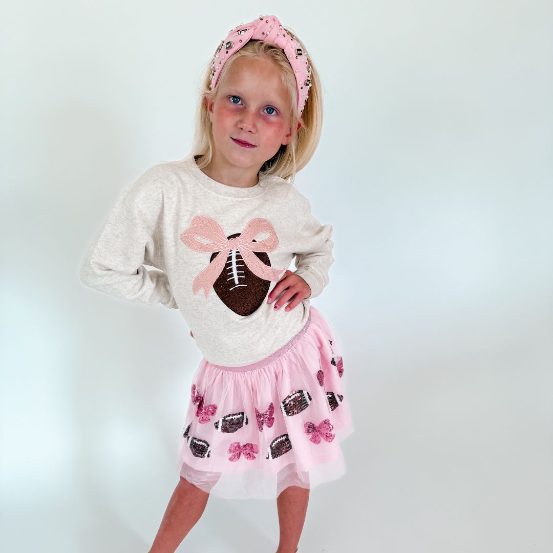 The Coquette Football Patch Sweatshirt is a fun and cute sweatshirt for celebrating Game Day!