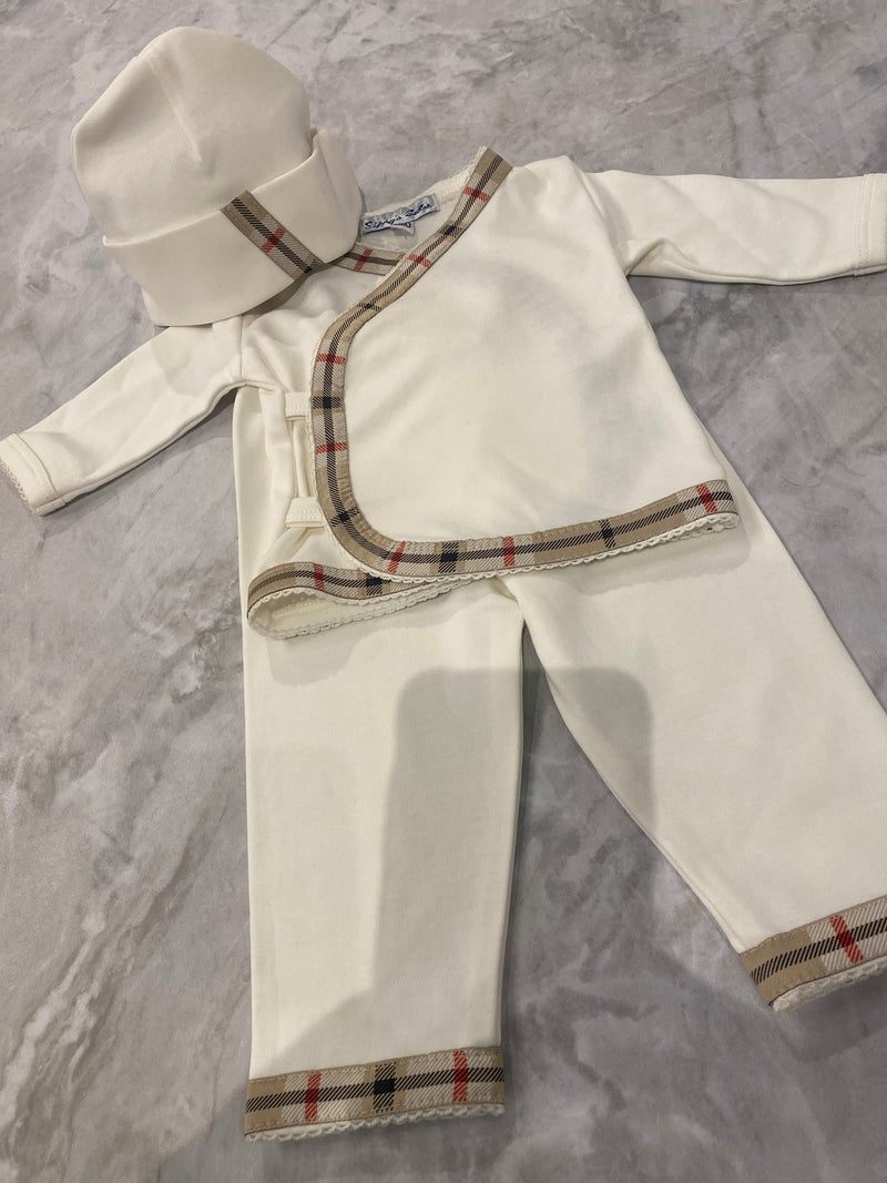 Cream 3 Piece Set with Check Trim