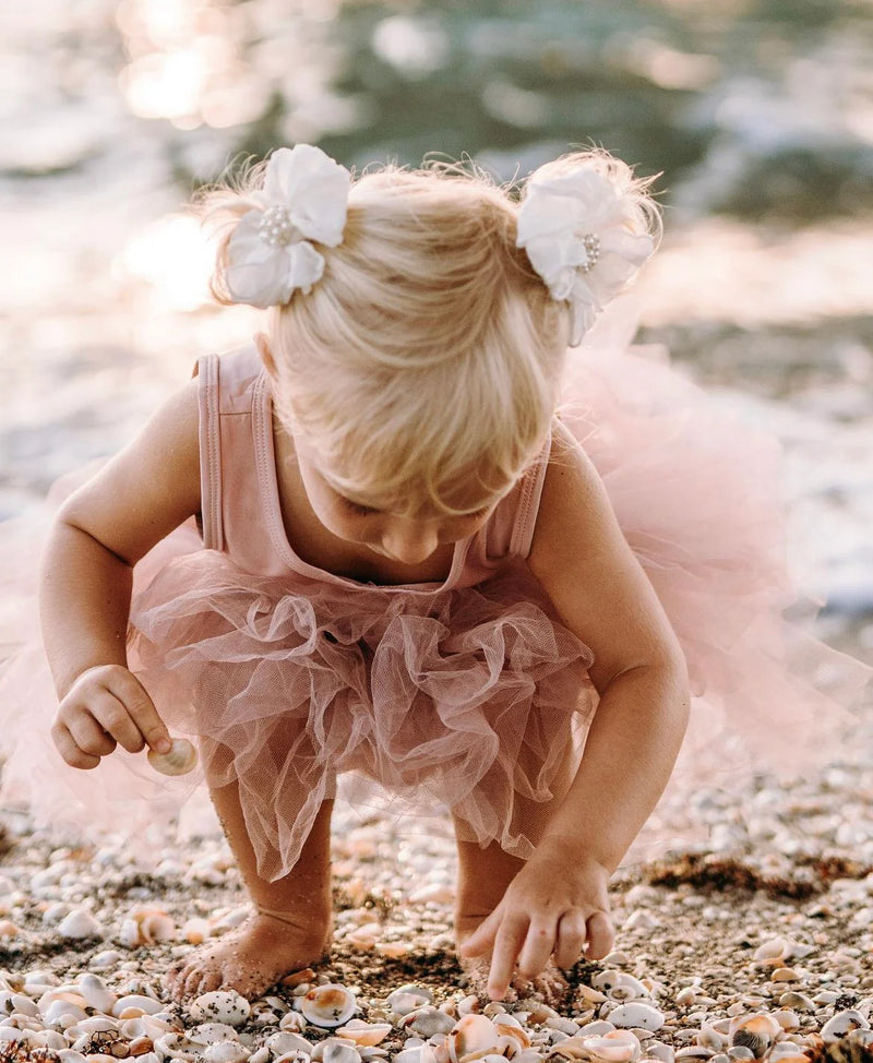 Ballet Pink Pearl & Rhinestone Mini Ruffle Headband