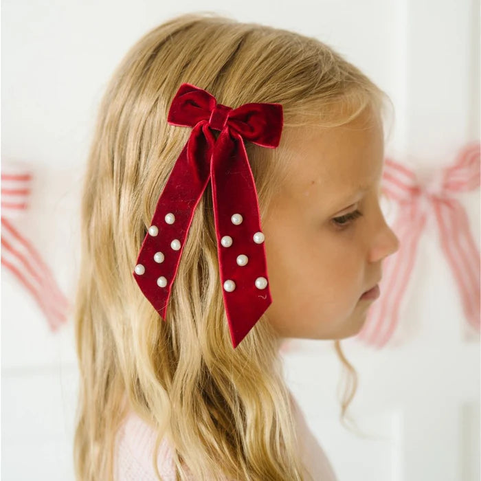 Ruby Red Velvet Coquette Bow Clip