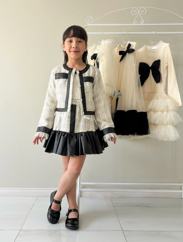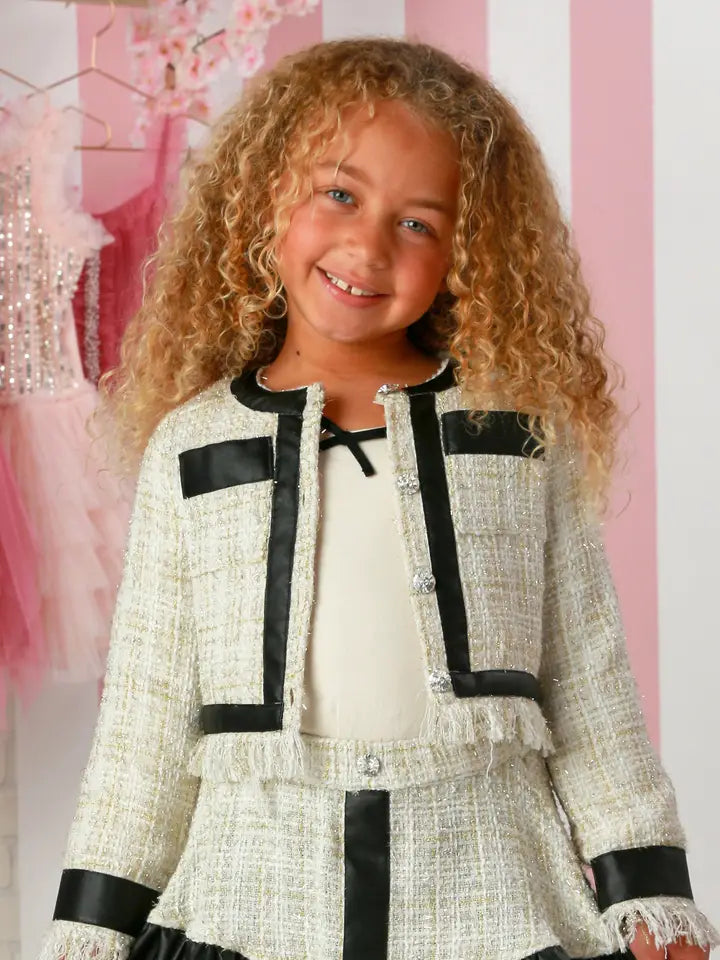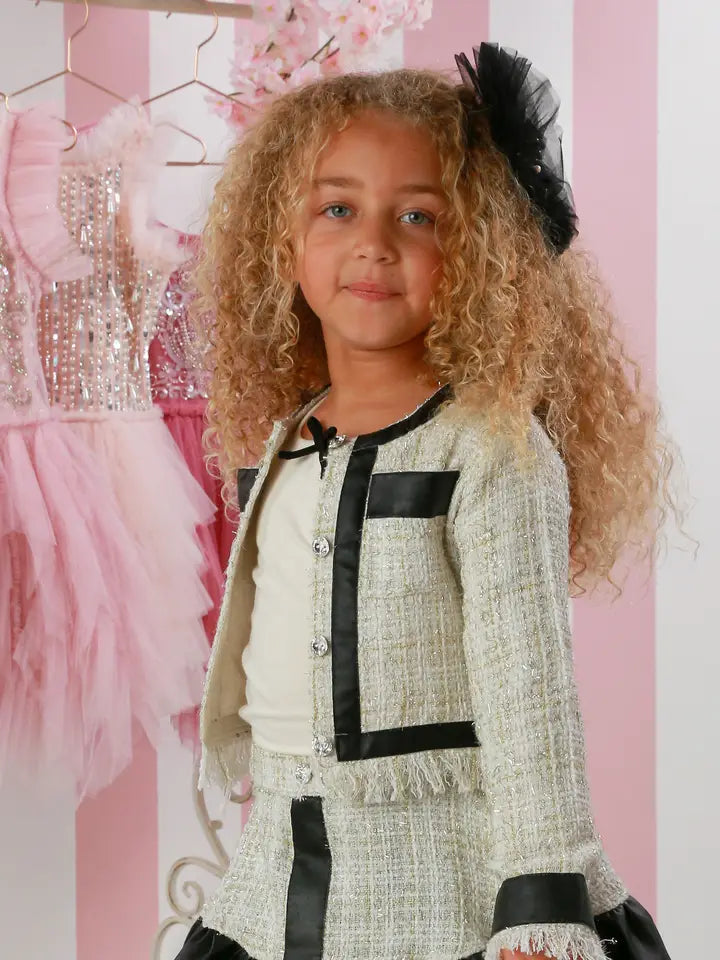 Coco Coco Tweed Skirt 3 Piece Set with crystal button