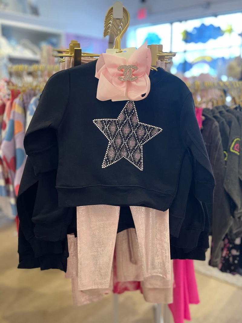 Black Ribbed Long Sleeve Top and Red/Black Check Hearts Dress