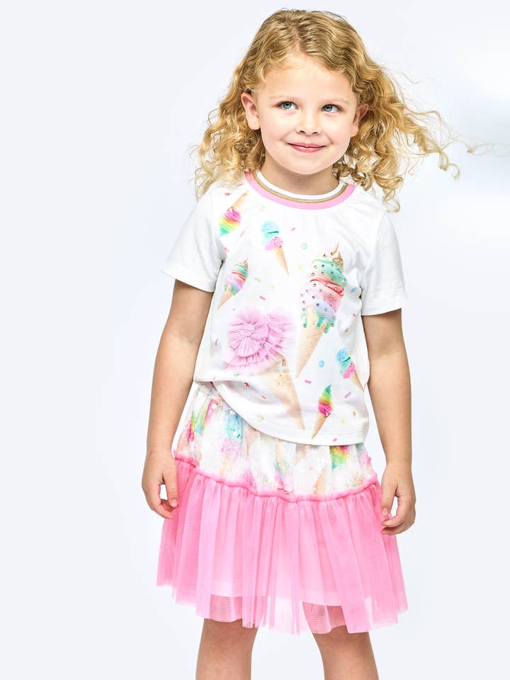 White Multi Ice Cream Graphic Top w/Rhinestones