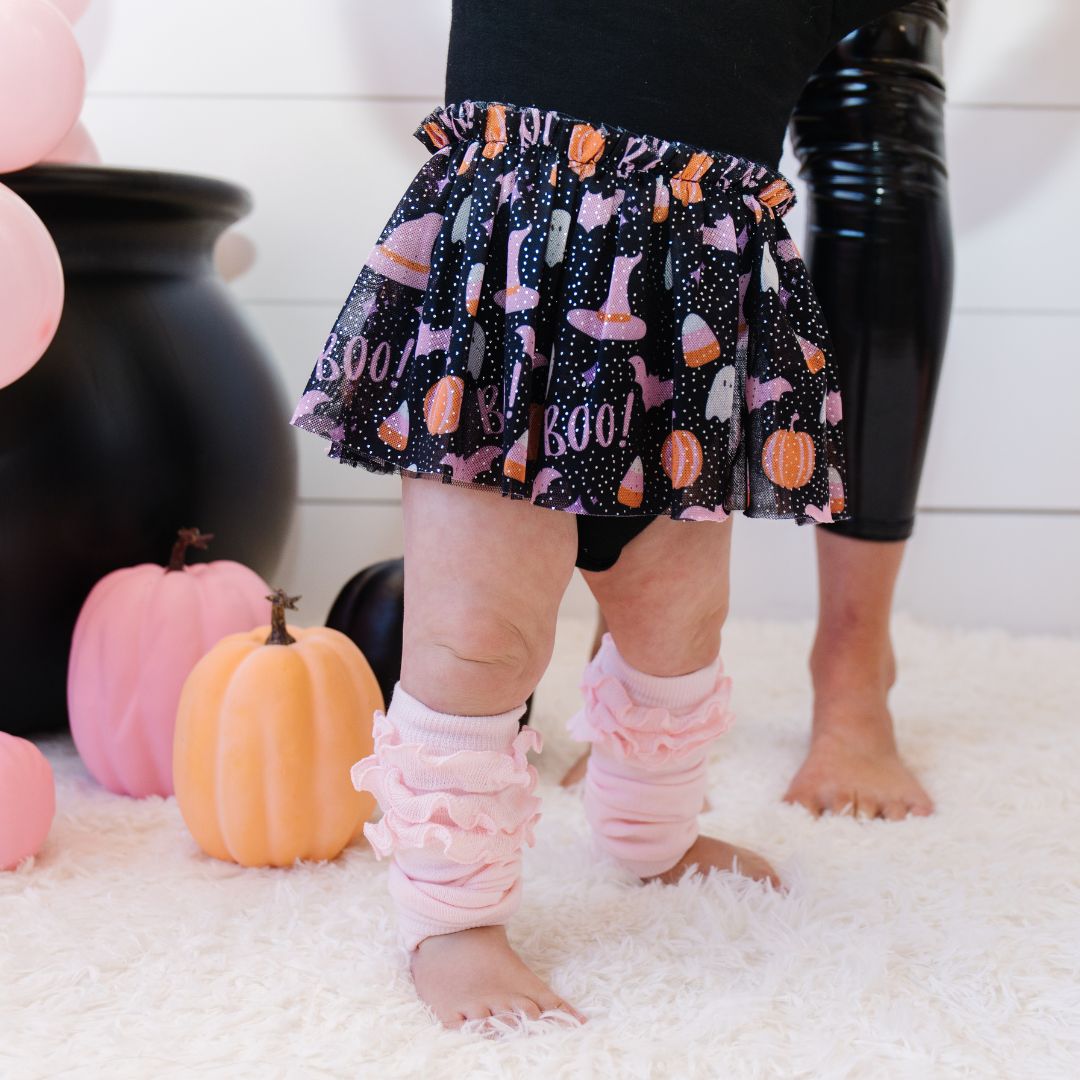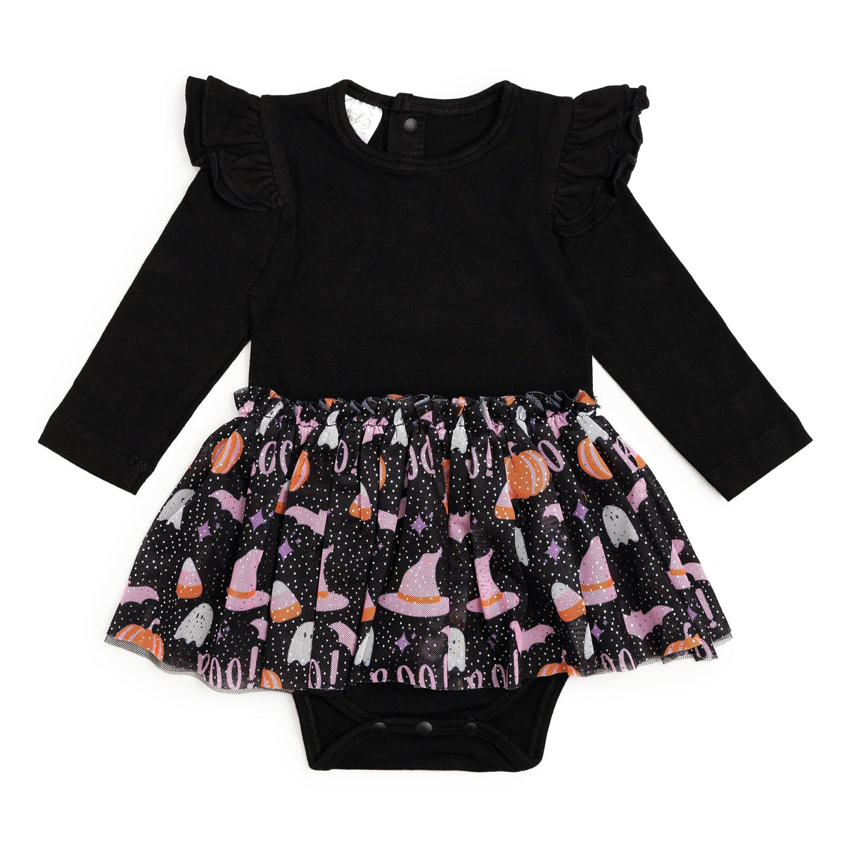 The Boo Halloween Long Sleeve Tutu Bodysuit is a fun and festive bodysuit for babies celebrating Halloween!