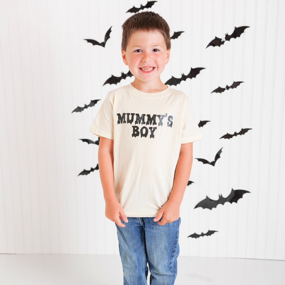 The Mummy's Boy Halloween Short Sleeve T-Shirt is a fun and festive t-shirt for kids celebrating Halloween!