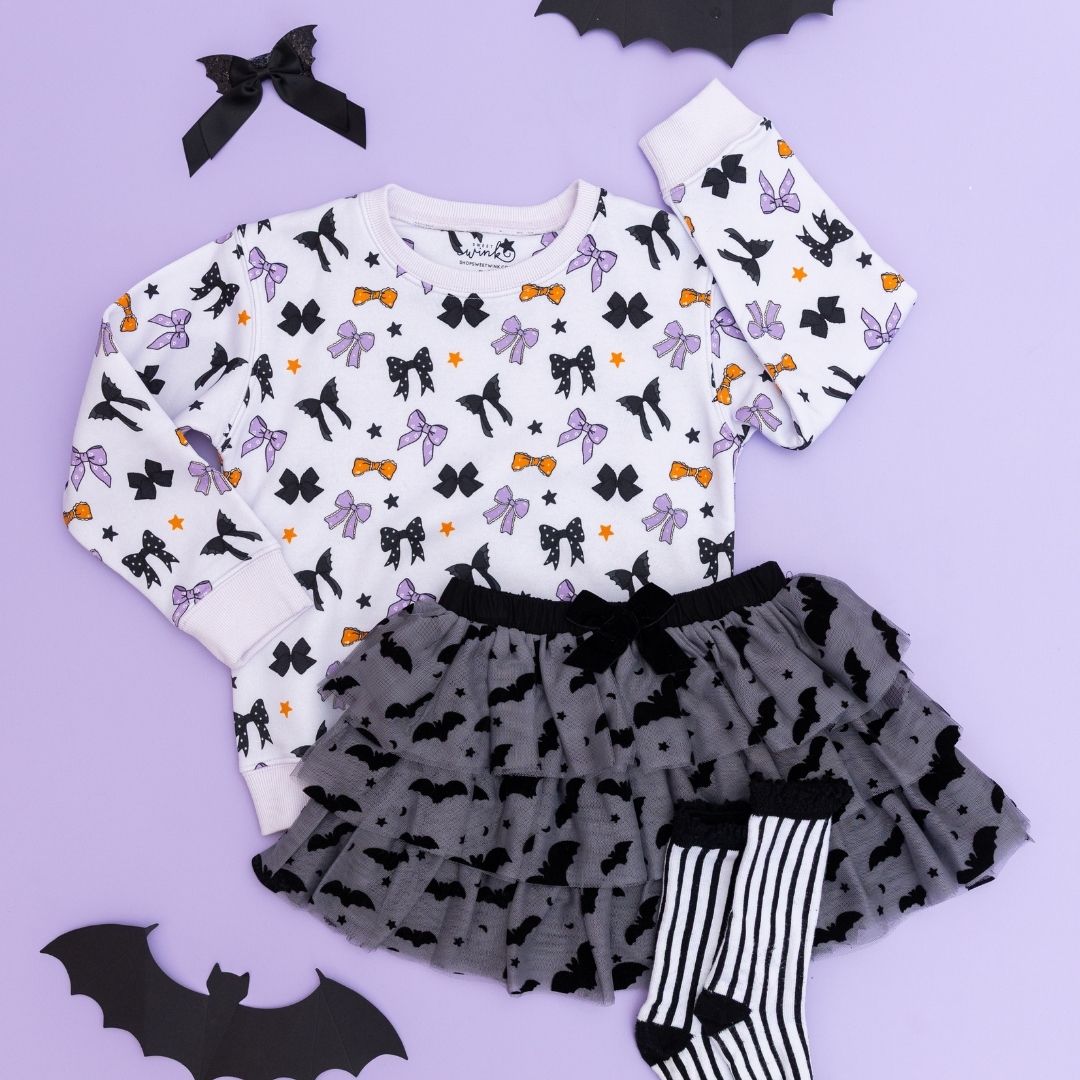 The Spooky Bows Halloween Sweatshirt is a fun and festive sweatshirt for celebrating Halloween!