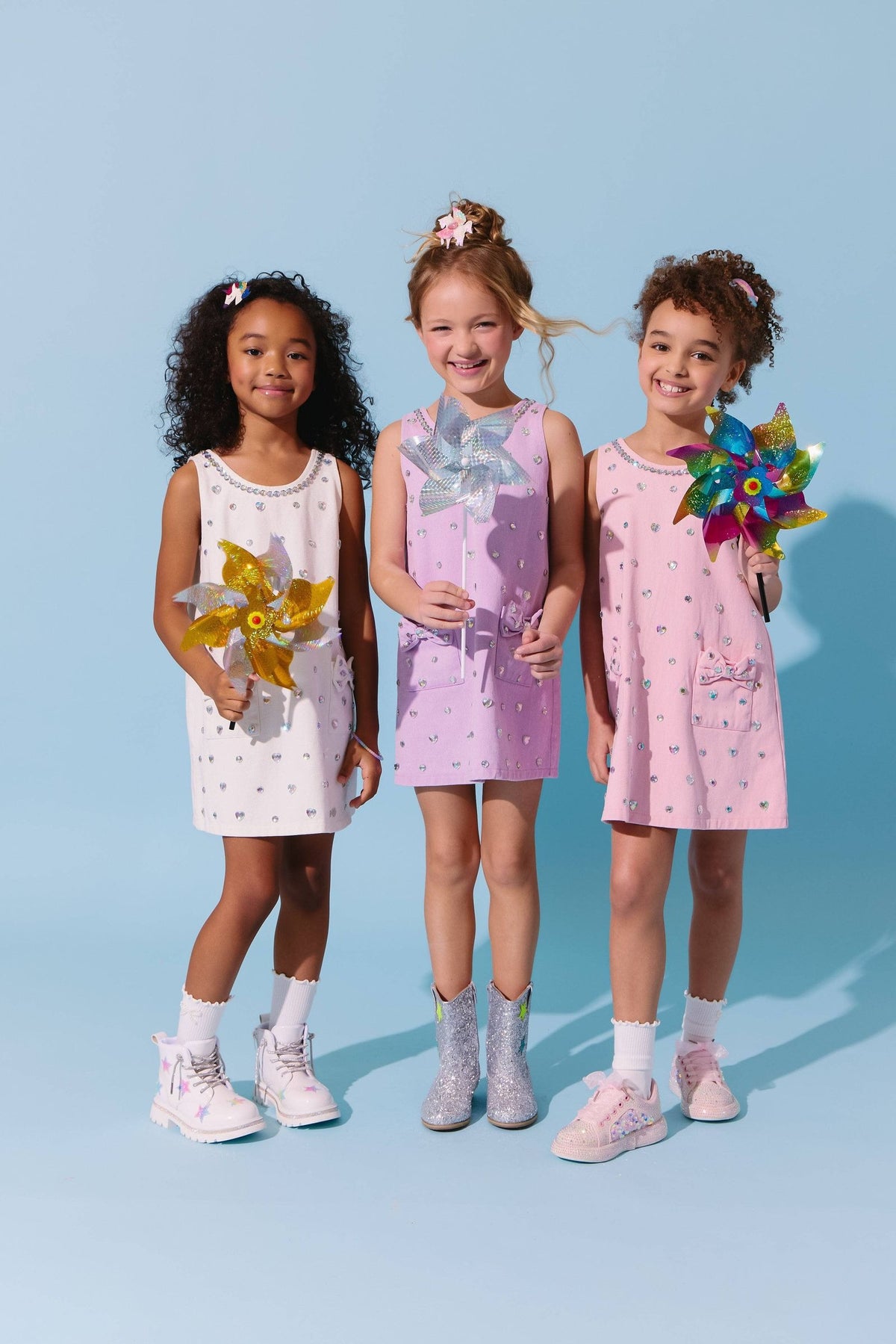 • Elegant shift dress with shimmering rhinestone heart embellishments for a dazzling statement.