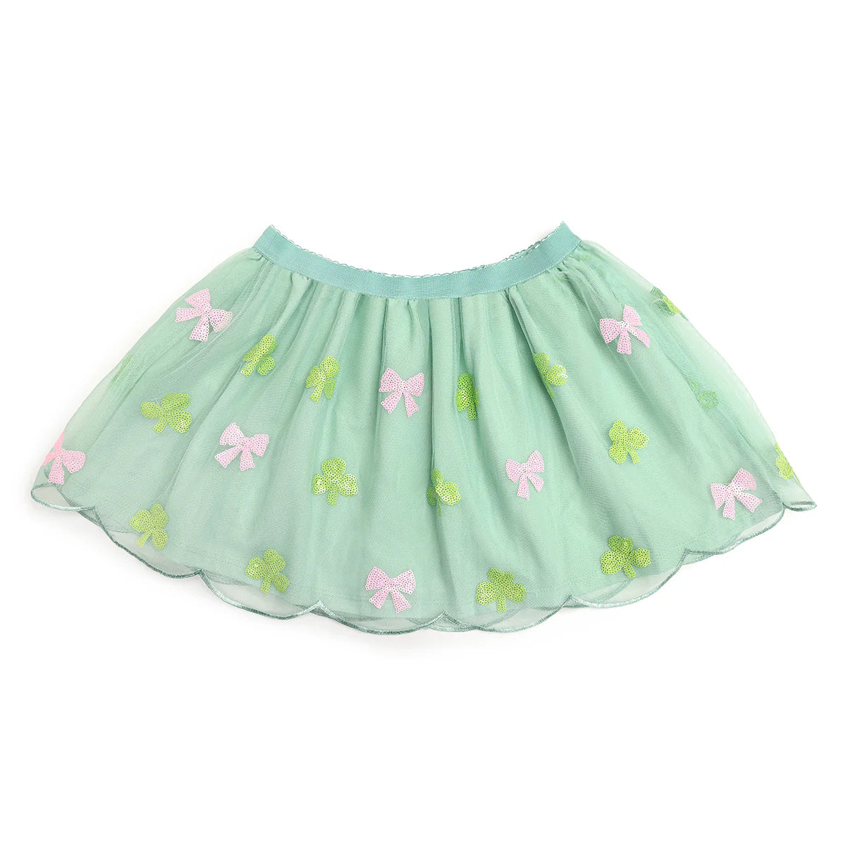Get ready for some serious St. Patrick's Day twirls in this enchanting mint green tutu, adorned with charming pink sequin bows and sparkling green shamrocks! Your little dancer will feel like the luckiest charm in the parade.