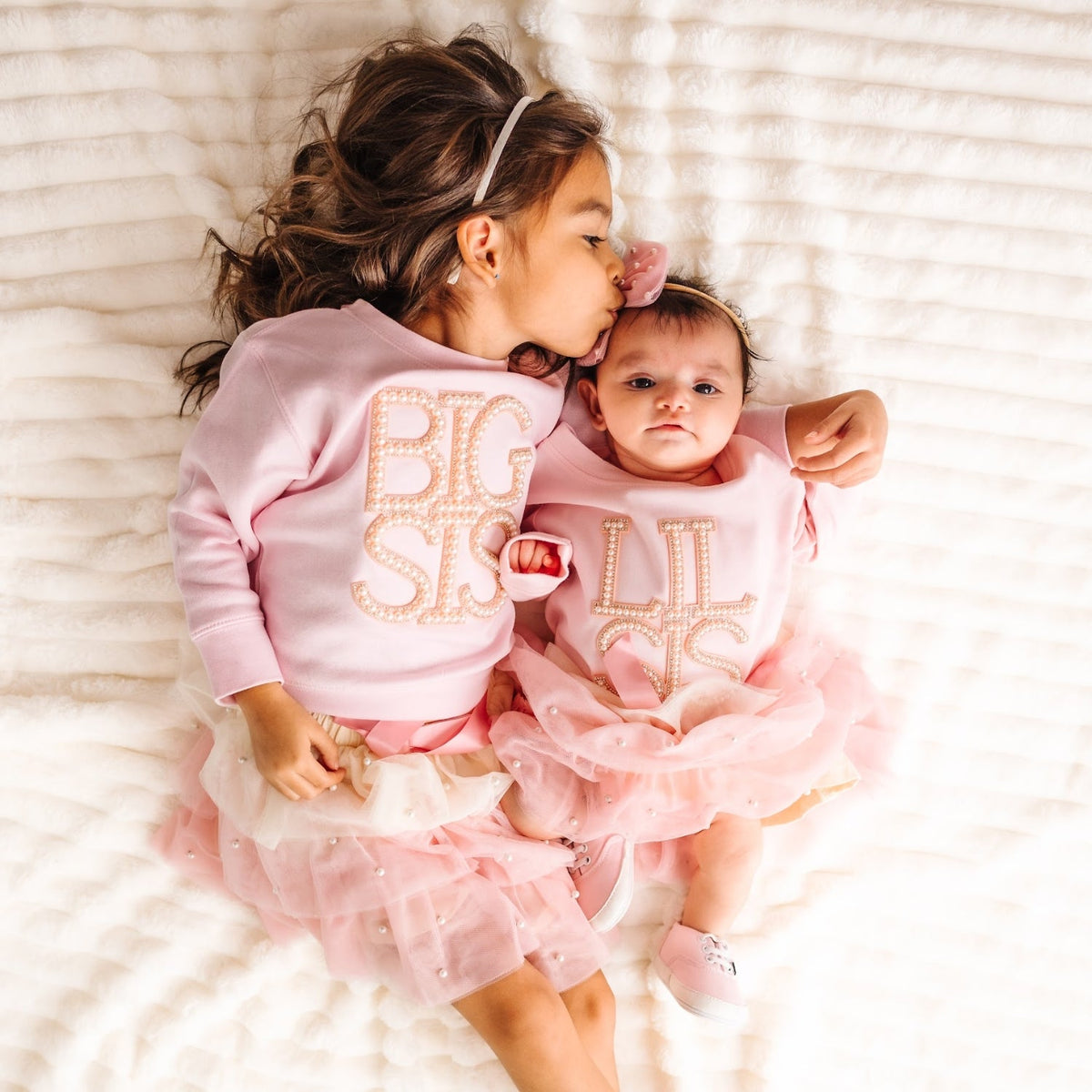 The Big Sis Pearl Patch Sweatshirt is a fun and cute sweatshirt for any girl who's a big sister or about to become a big sister!