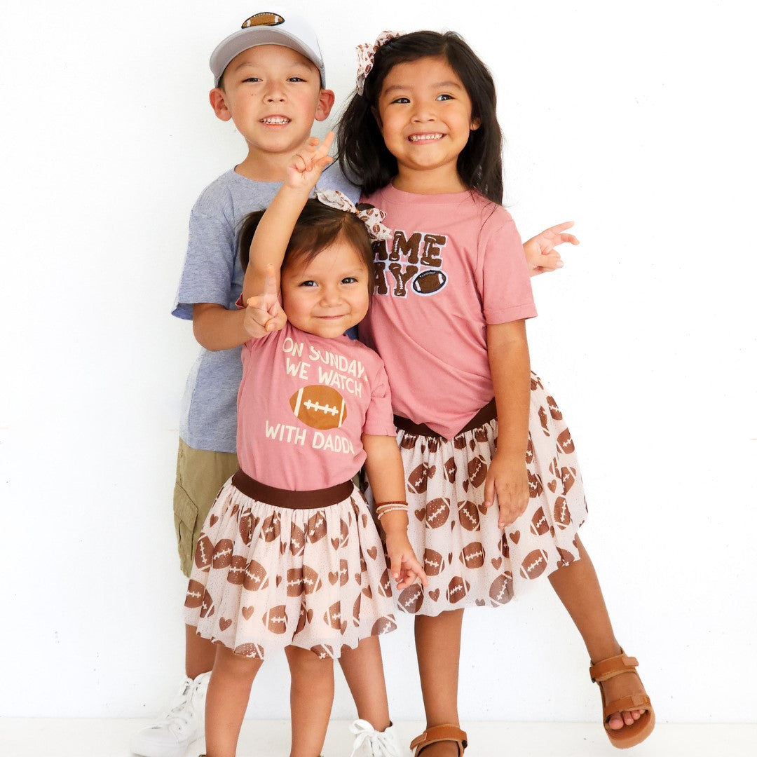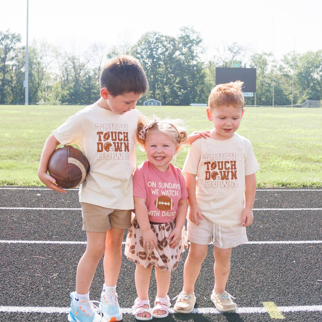 The Football Sundays With Daddy Short Sleeve T-Shirt is a fun and cute t-shirt for kids celebrating Game Day!