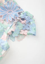 The Addison Embroidered Mini Dress is a beautifully detailed floral piece made for sunshine moments. With 3D floral appliqué, pastel embroidery, and a softly flared skirt, this dress brings whimsy and elegance to any special event.