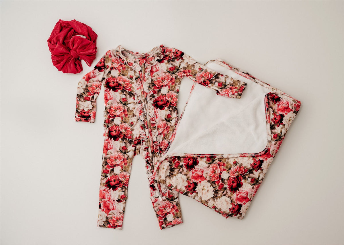 ✨ Our Crimson Bloom floral is a beautiful choice for Christmas or any time of year—perfectly complemented by the matching Cranberry Headband.