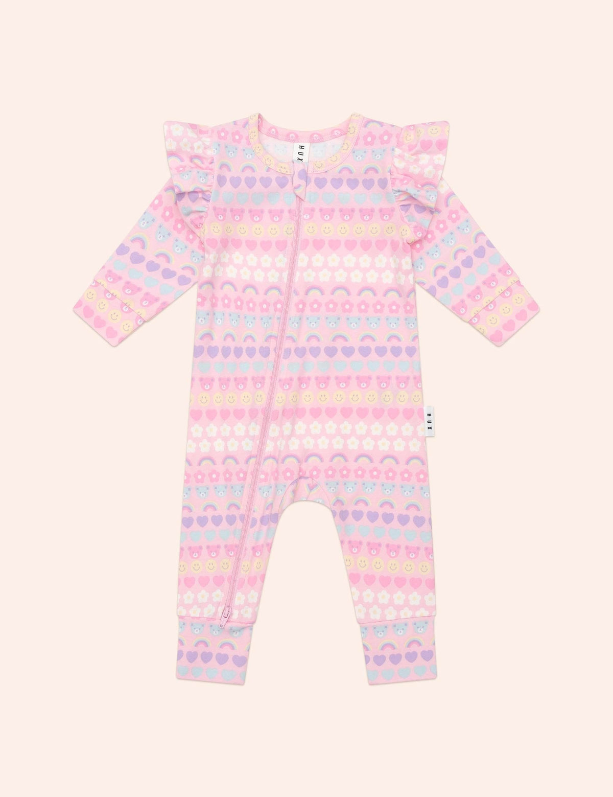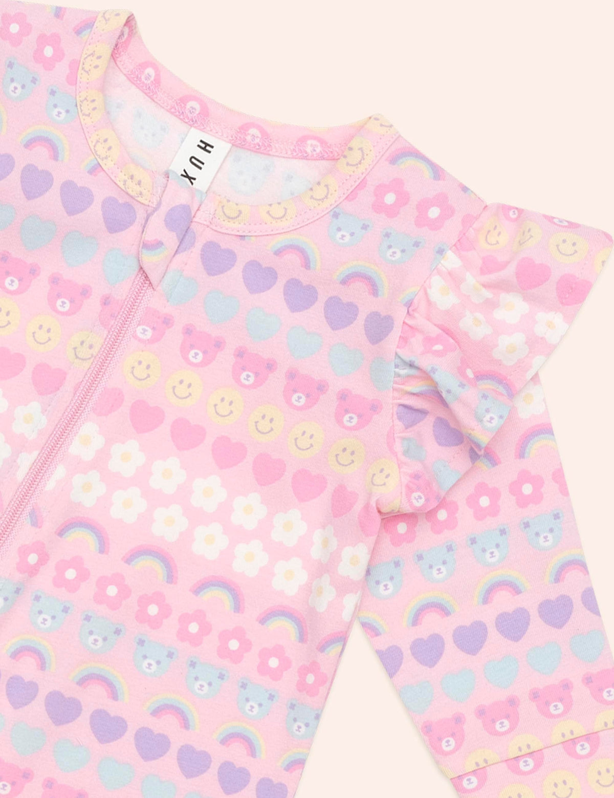 This buttery soft romper is made from the most delicious organic cotton baby will love. It has sweet shoulder frills and a fun emoji print in playful shades of pink. It features a full length, two-way zipper for easy nappy changes and a safety fold zip for peace of mind. Just add squishy legs.