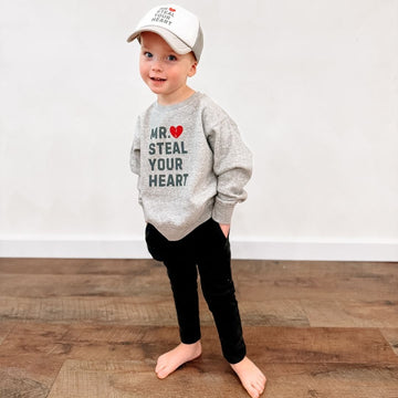 The Mr. Steal Your Heart Valentine's Day Trucker Hat for kids is a fun and festive accessory for celebrating Valentine's Day!