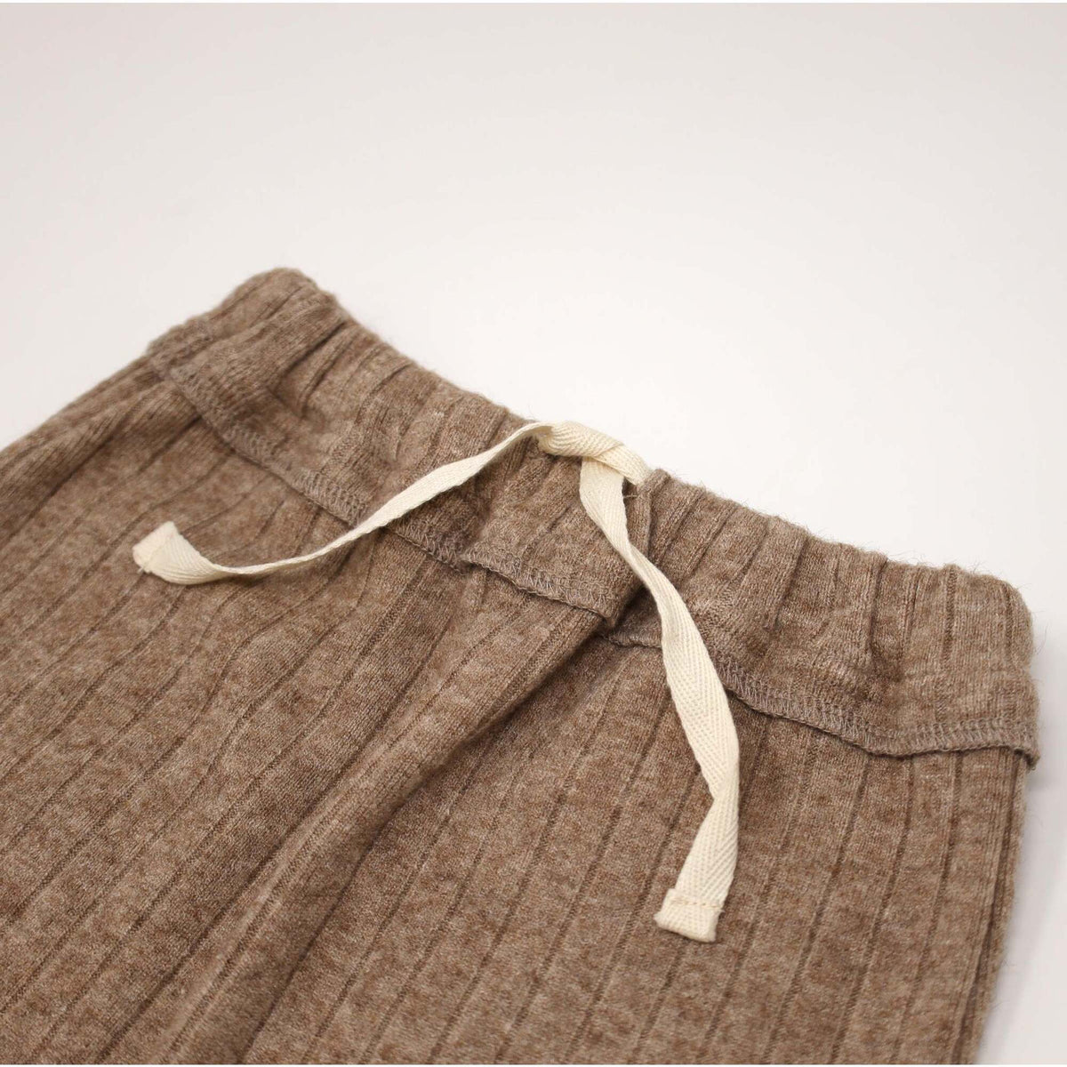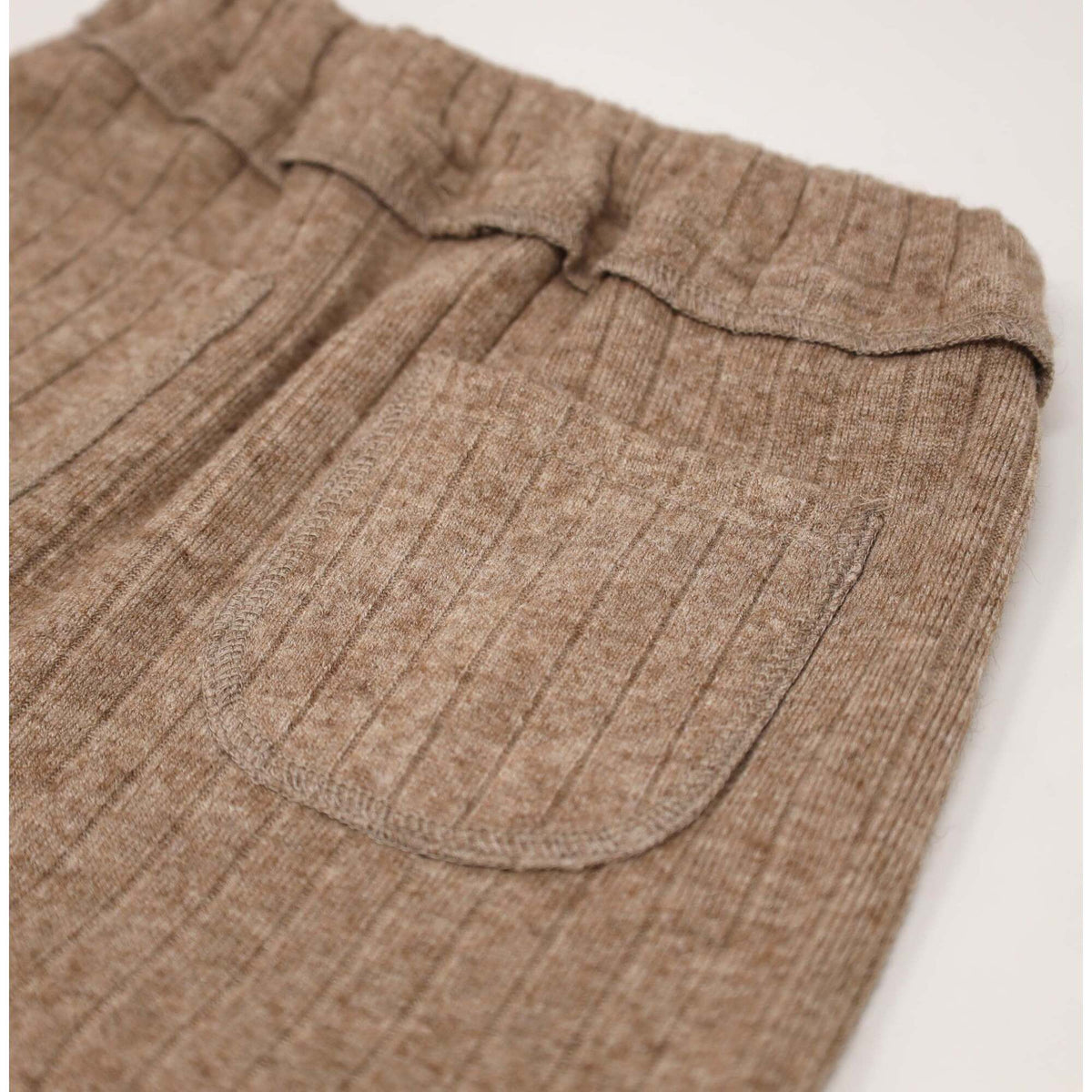 Cozy sweater knit pants with elastic waist and drawstring. Features pockets in back. Available in infant and toddler sizes. Designed in Minnesota. Coordinates with our Wide Rib Sweater Knit Boxy Sweater.